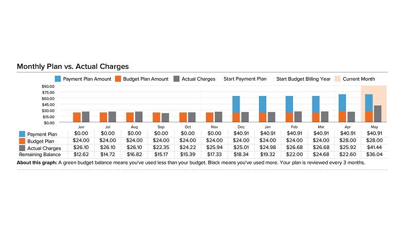 In this section, you can track your progress if you're on a payment plan and if you make consistent monthly payments through a budget billing plan.