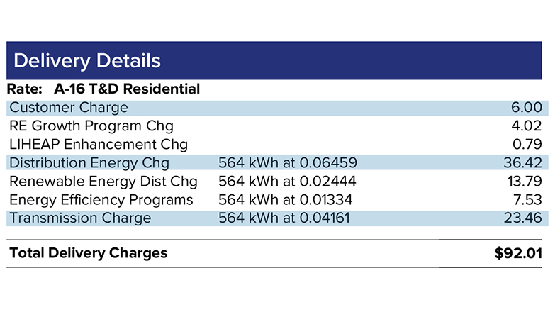 The Delivery Charge covers the cost of delivering electricity to your home safely and reliably. This charge is made up of: